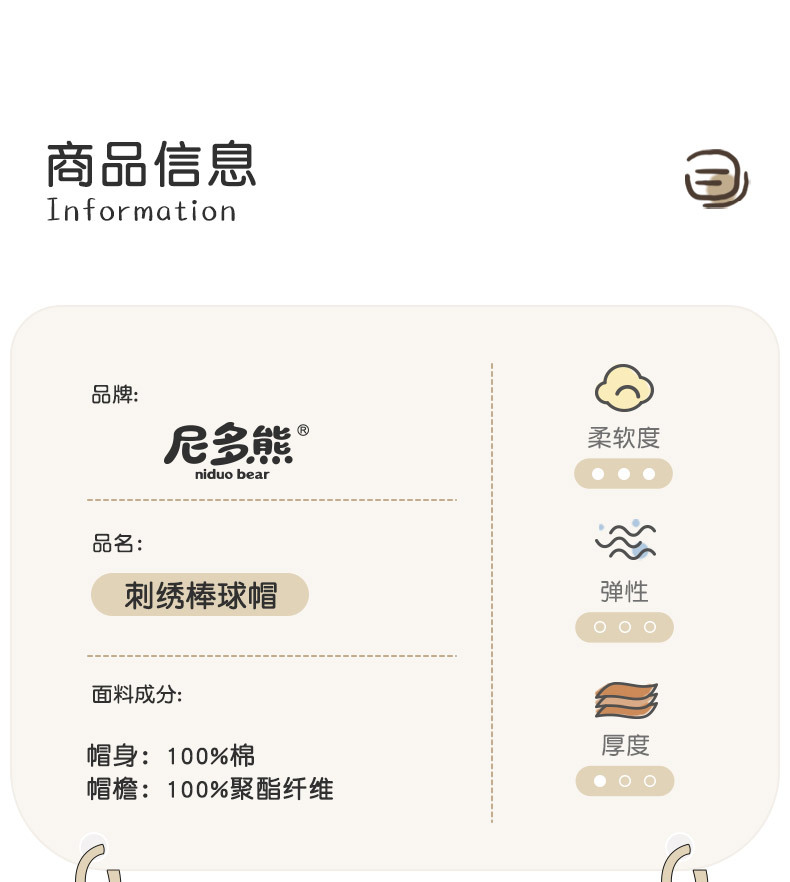 Nido Bear 2023 Children's Hat Boys' Cap Baby Baseball Cap Girls' Spring And Autumn Cotton Baby Cap